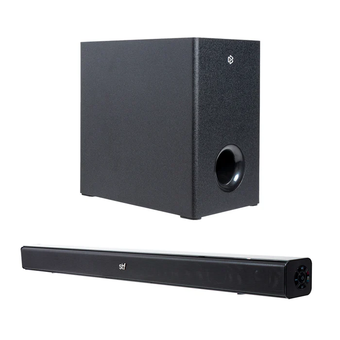 Barra de sonido 2.1 STF Blade Max conexión 5.3, potencia de 60W, subwoofer inalámbrico,. Entrada HDMI / Óptica / USB / Auxiliar