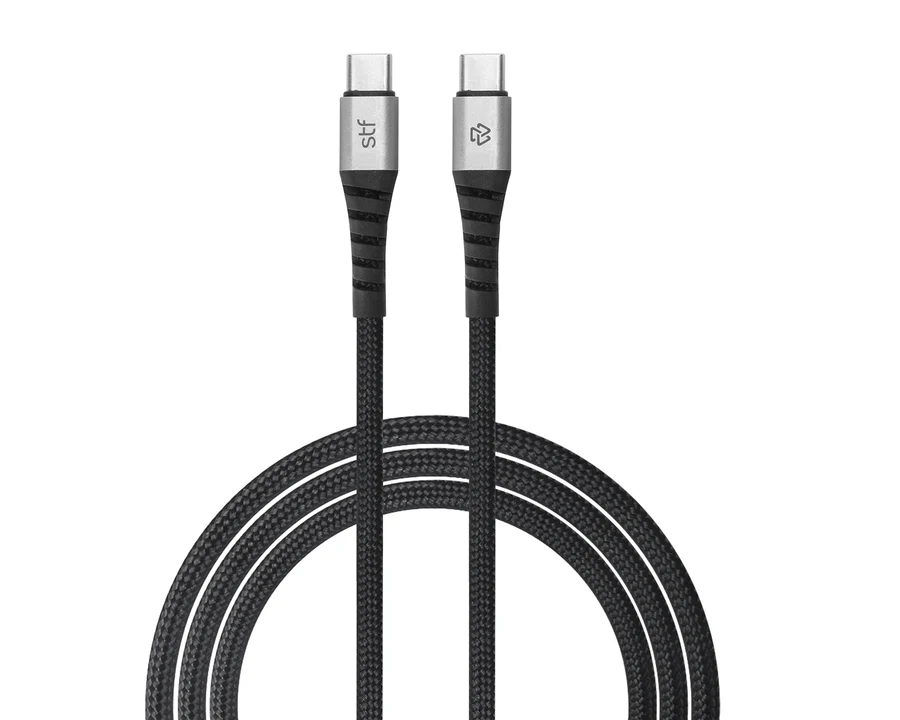 Cable Tipo C a Tipo C de 1.8 metros STF con carga ultra rápida de 30W PD. Textil reforzado y aluminio para mayor durabilidad y eficiencia.