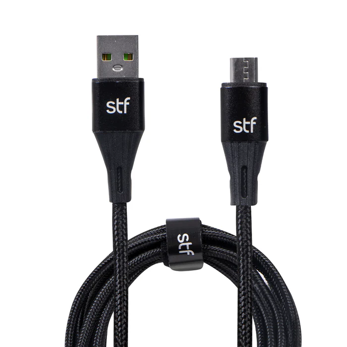 Cable USB a Micro USB de 1.8 metros STF en negro con carga rápida de hasta 2A y transferencia de datos para tus dispositivos.
